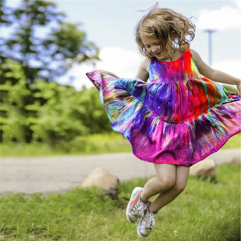 Очаровательное летнее платье для девочек платье принцессы без рукавов на день рождения радуга Цвет одежда От 2 до 6 лет; Детские карнавальные костюмы Нарядные платья для девочек Детский костюм