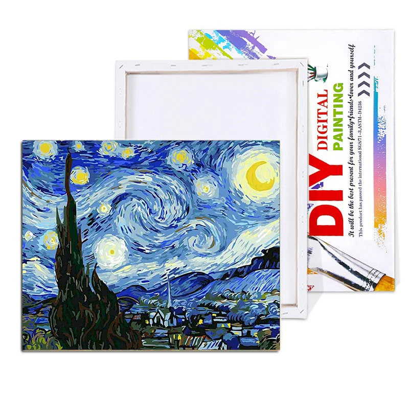 Набор для раскрашивания картин по номерам Ван Гога, набор для взрослых, с рамкой, акриловые краски, декор по номерам