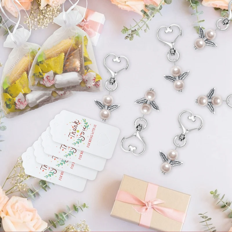 Брелки в виде ангелов, 24 шт., мешочки из органзы, с надписью Thank...