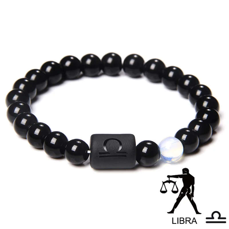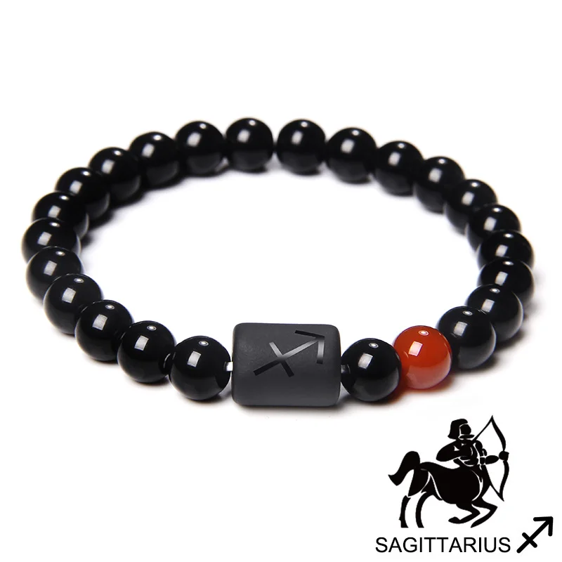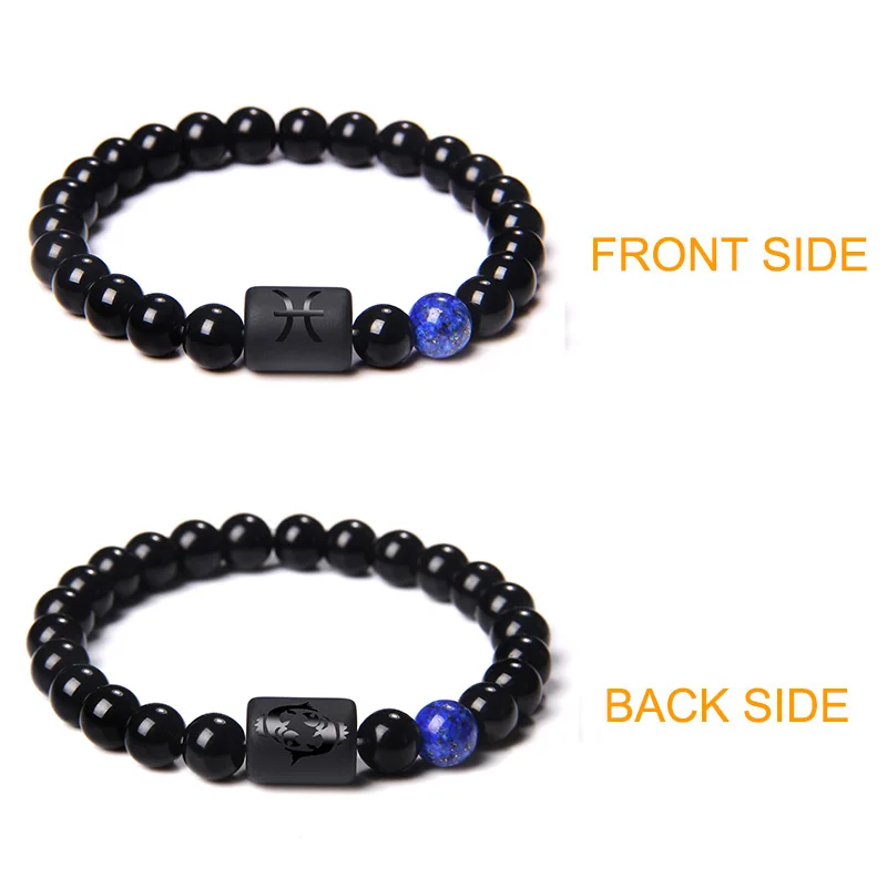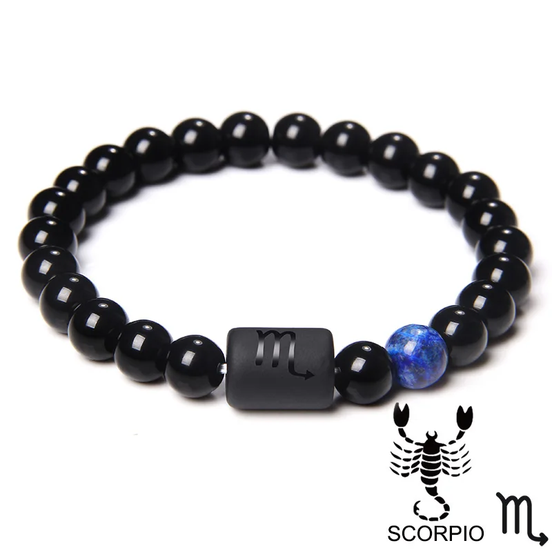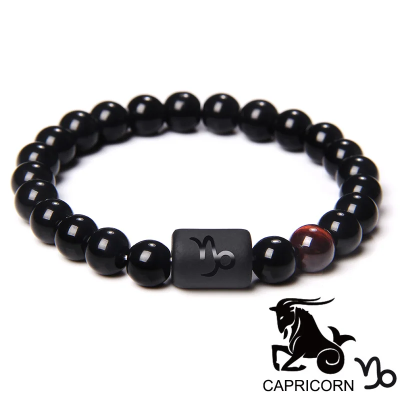 Эластичный браслет с подвесками, 12 знаков зодиака, браслет для пары натуральный черный оникс