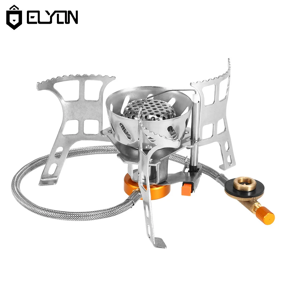 Туристическая горелка ELYON, ветрозащитная портативная уличная газовая мини горелка, плита для кемпинга, кухонная утварь, газовая плита для выживания, сильная горелка