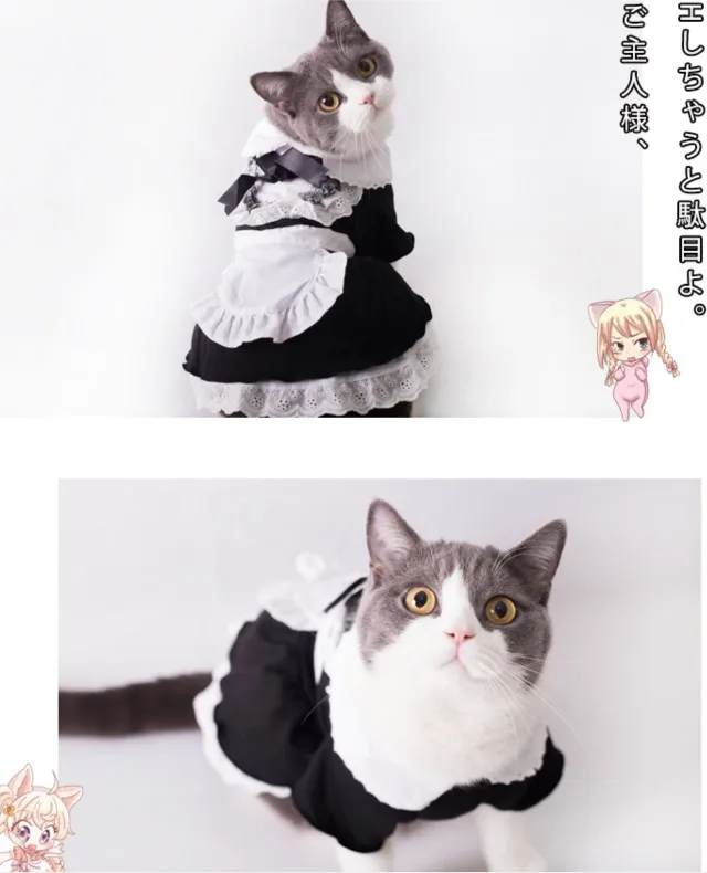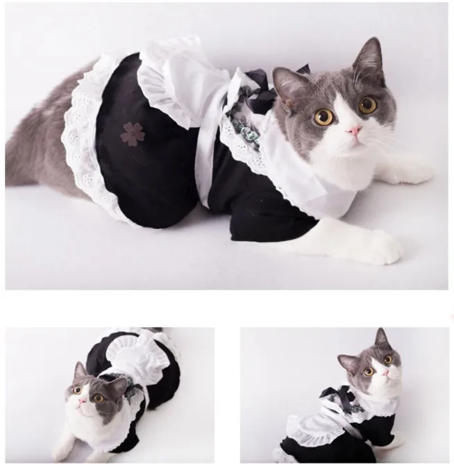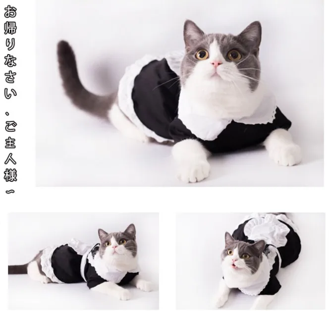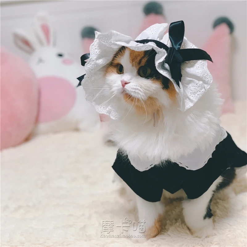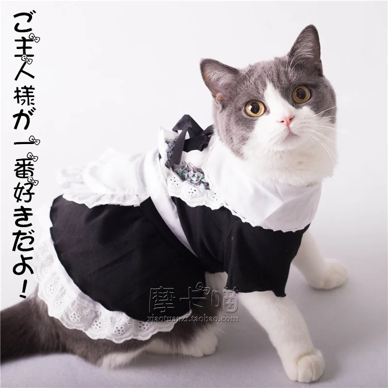 Платье для кошек, хлопковая Милая одежда для домашних животных, косплей, костюм японской горничной, костюм с шапкой-трансформером, платье из полиэстера