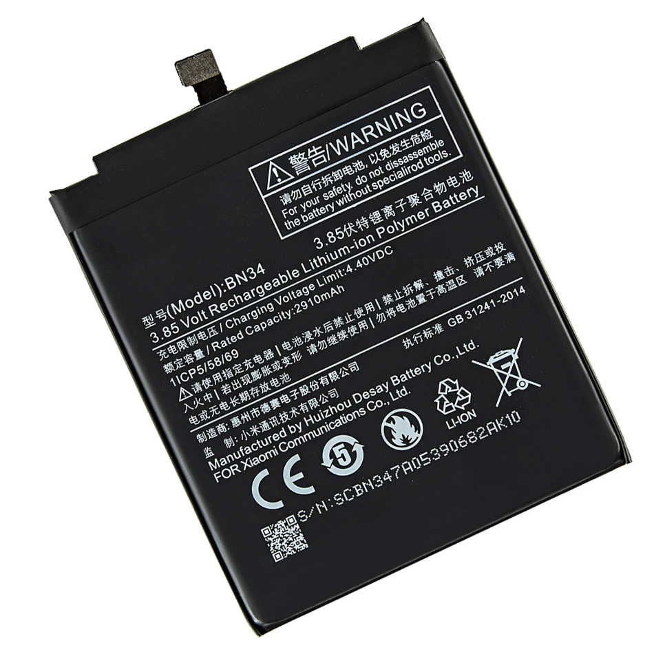 Аккумулятор для телефона BN34 для Xiaomi Redmi 5A 5,0 "сменная батарея 2910mAh аккумулятор большой емкости для телефона + инструменты Бесплатный инструмент + трекно