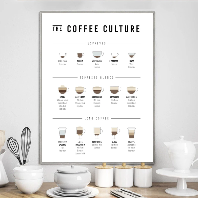 Кофе руководство плакат художественные принты Кухня Декор стены, кофе влюбленных подарок стены искусства холст живопись кафе магазин украшения фотографии
