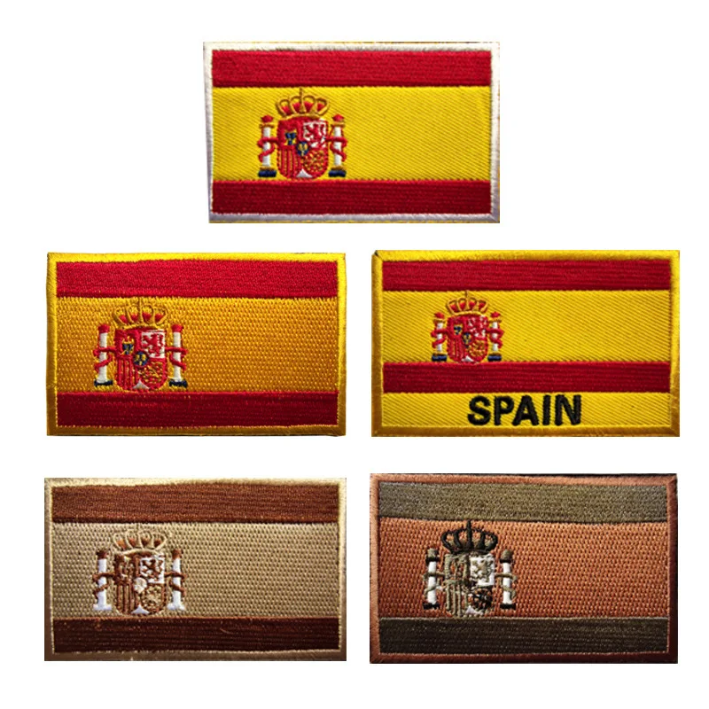 Нашивка с флагом Испании и полиции, нашивка с полной вышивкой, тактический флаг бордового Креста, наклейка, испанские значки Гео, аппликации
