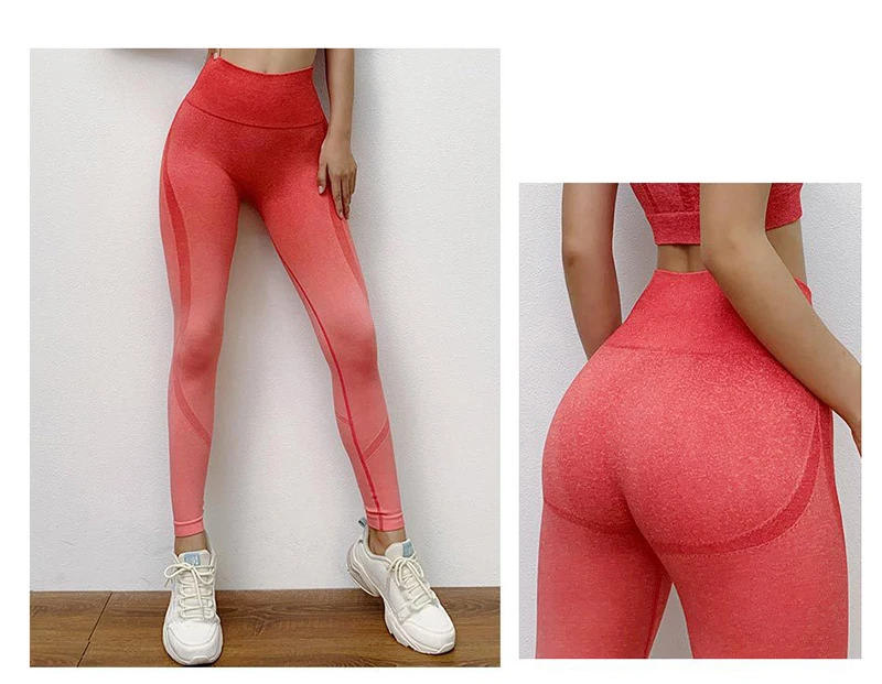 Высокая талия Бесшовные штаны для йоги, градиент, пуш-ап Леггинсы для женщин, фитнес, тренировки, бега, леггинсы, сжимаемые, спортивные колготки