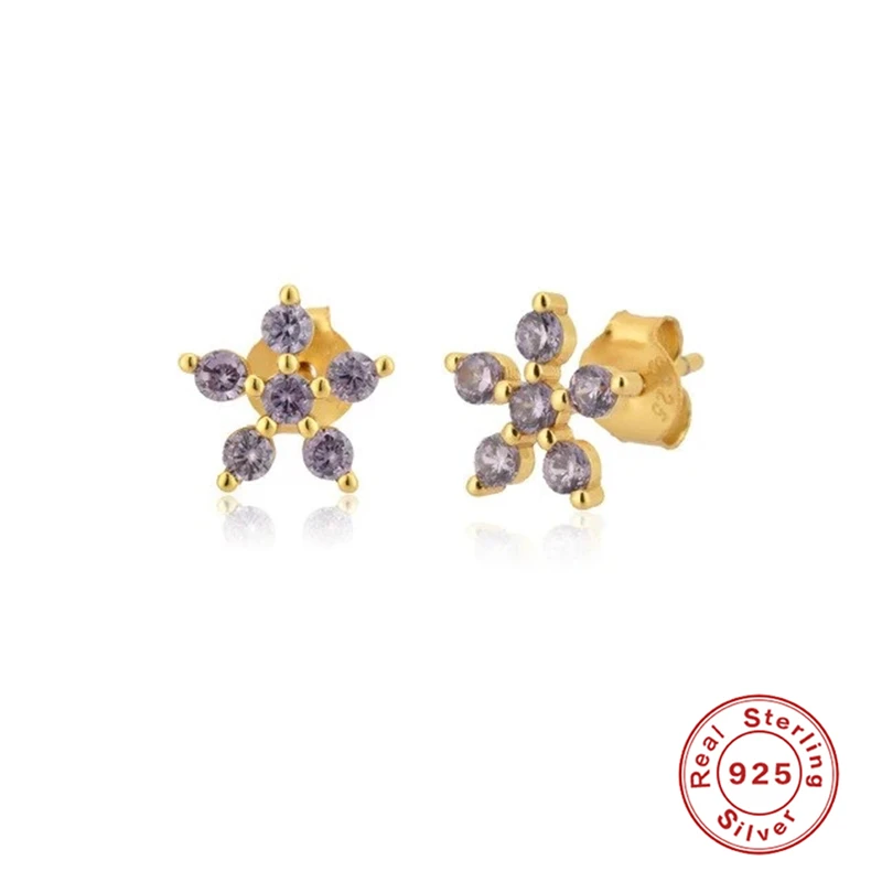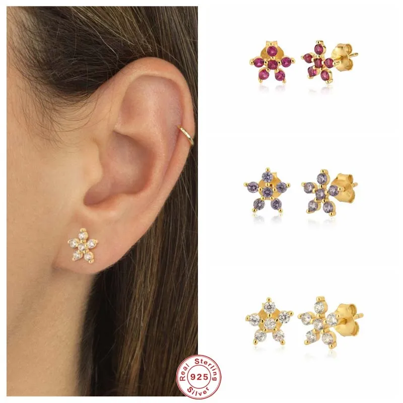 Aide 925 стерлингового серебра пять циркониевые серьги-гвоздики в виде цветка для женщин и девочек Хрустальный пирсинг Ohrringe Pendiente вечерние ювелирные украшения