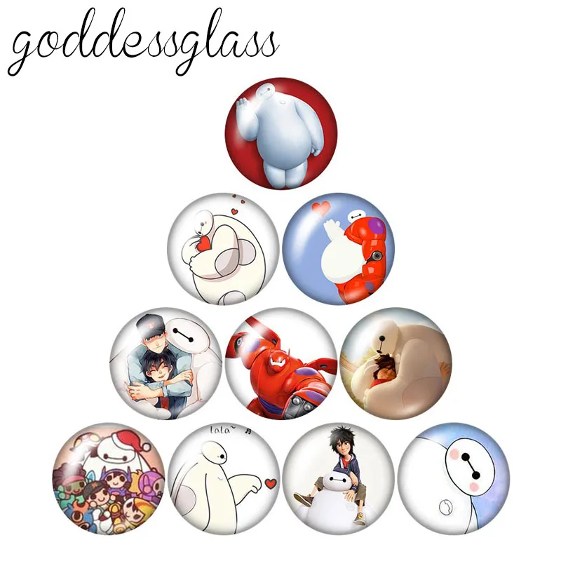 Disney с буквенным принтом Большой Герой 6 BaymaxХиро Hamada 10 шт. 12 мм18 мм20 мм25 мм кабошоны круглые фото кабошоны разрисованные изделия из стекла с плоской задней частью ожерелье украшения своими руками