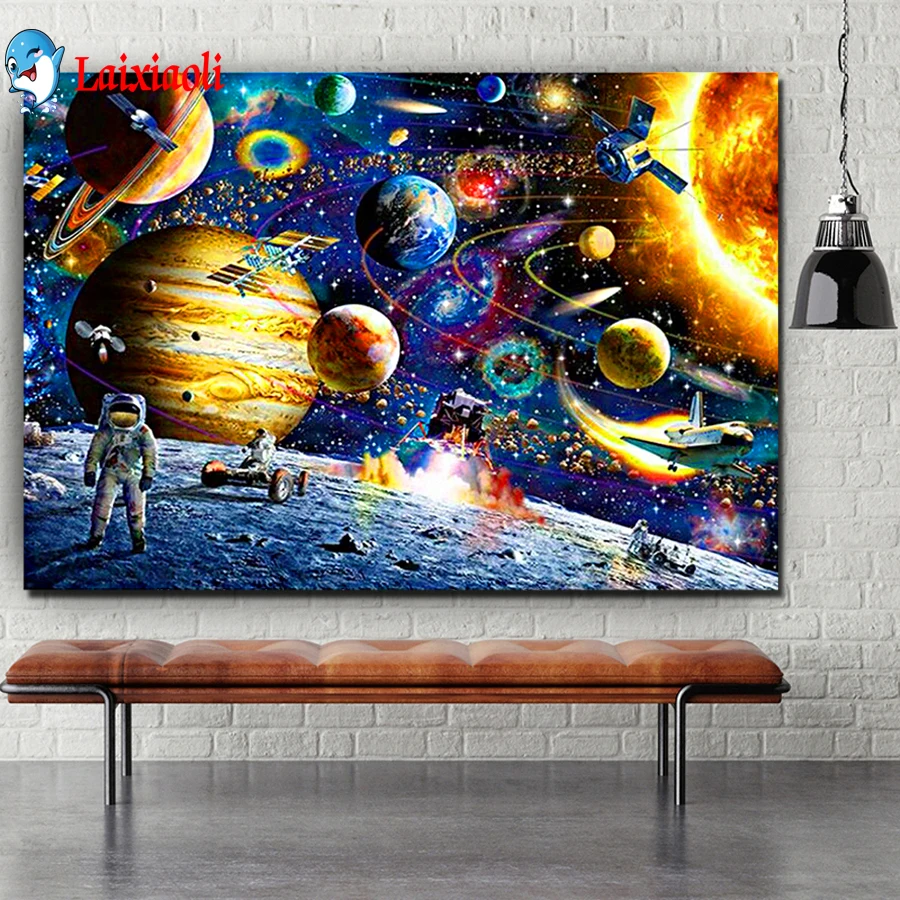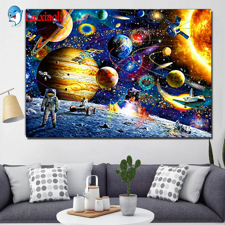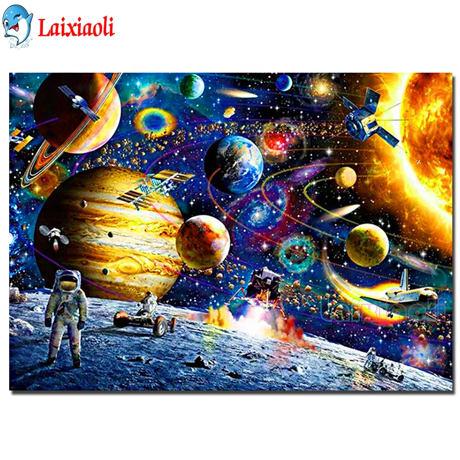 Алмазная живопись, мультяшная планета, Вселенная, солнечная система, алмазная живопись, картина, алмазная вышивка, рукоделие, квадратная картина