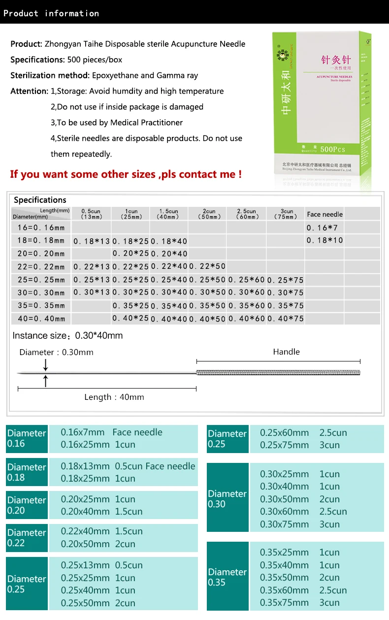 0,40 мм, все размеры, Zhongyan Taihe, 500 шт., 1 коробка, стерильны...