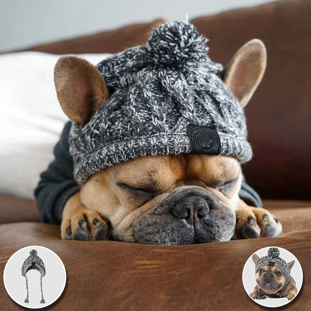 Зимняя теплая шерстяная вязаная шапка для собак, ветрозащитная, пушистая, для домашних животных, для маленького и среднего размера, шапка для собак, для французского бульдога, щенка, кота, чихуахуа
