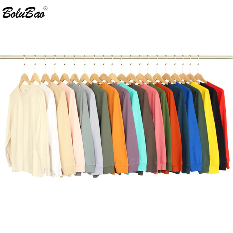 Футболка BOLUBAO мужская с круглым вырезом, модная брендовая тенниска с длинными рукавами, повседневная майка из натурального хлопка, Однотонная рубашка, 2021