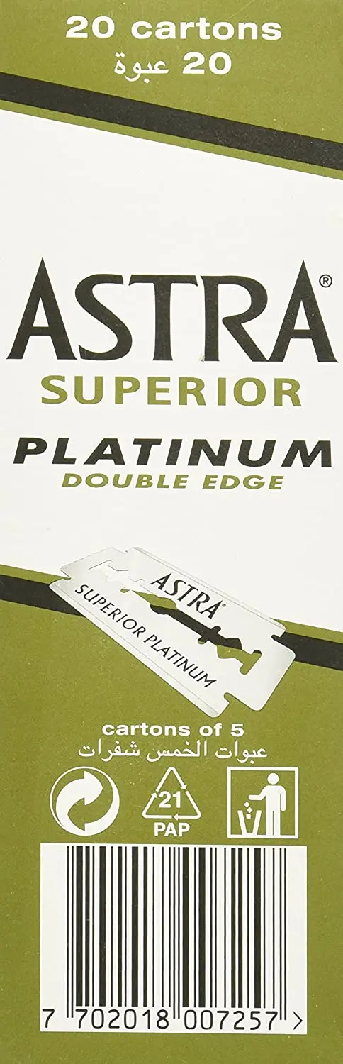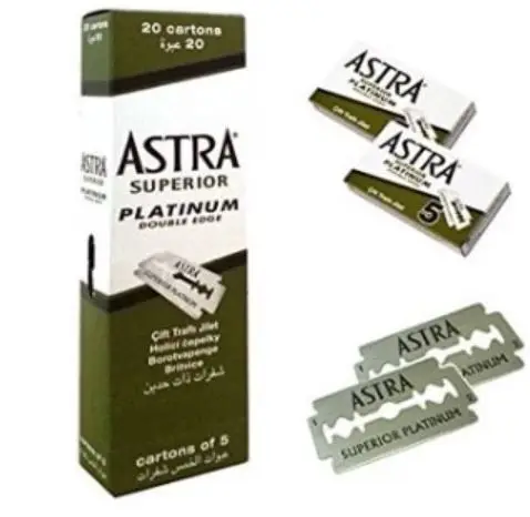 Astra Улучшенная Платина с двойными краями лезвия для бритвы для бритья зеленая посылка 5 шт. 10 шт. 20 шт. 50 шт. 100 шт. 200 шт. превосходное Платиновое двойное защитное бритье для мужчин Гладкая и удобная нержавеющая сталь и Платиновое покрытие лезвия высокого качества от P & GMade, чтобы соответствовать любой двойной край безопасности razorEach лезвие индивидуально обернуты в воск paperOne коробка содержит 20 коробок, каждая коробка запечатана и содержит 5 двойных лезвий. Лезвия ASTRA изготовлены из высококачественной стали.Каждое лезвие ASTRA обеспечивает непревзойденное качество, гладкость и долговечность для длительного, гладкого бритья