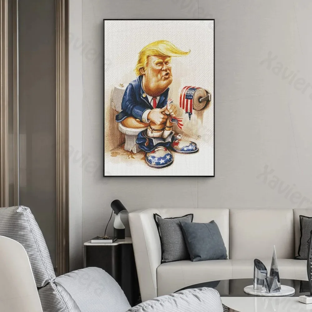 Алмазная 5D Вышивка сделай сам, абстрактная картина с изображением Дональда Трампа, мультяшный персонаж стразы, художественное украшение для туалета