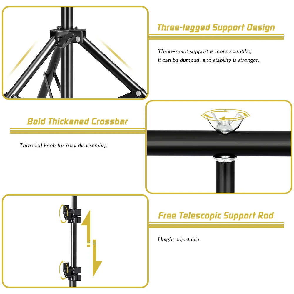 Т-образная Портативная подставка для фона, регулируемая рамка для фон, фото-декорации фотосъемки с пружинными зажимами для фотостудии