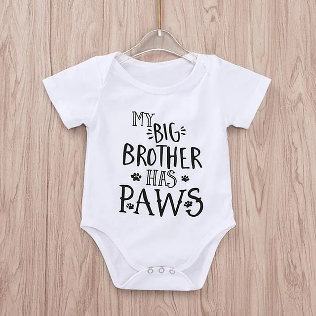Летние белые боди с коротким рукавом для новорожденных, повседневная одежда для маленьких мальчиков и девочек с лапами для моих братьев и сестер