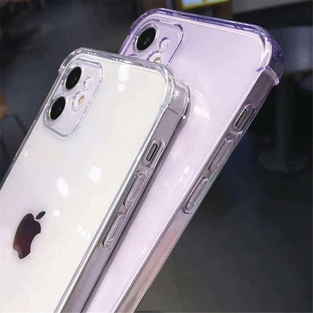 Противоударный чехол для iPhone 13, 12, 11 Pro Max, Mini, 7, 8 Plus, X, XS, XR, SE 2020, прозрачный, однотонный, мягкий, ТПУ