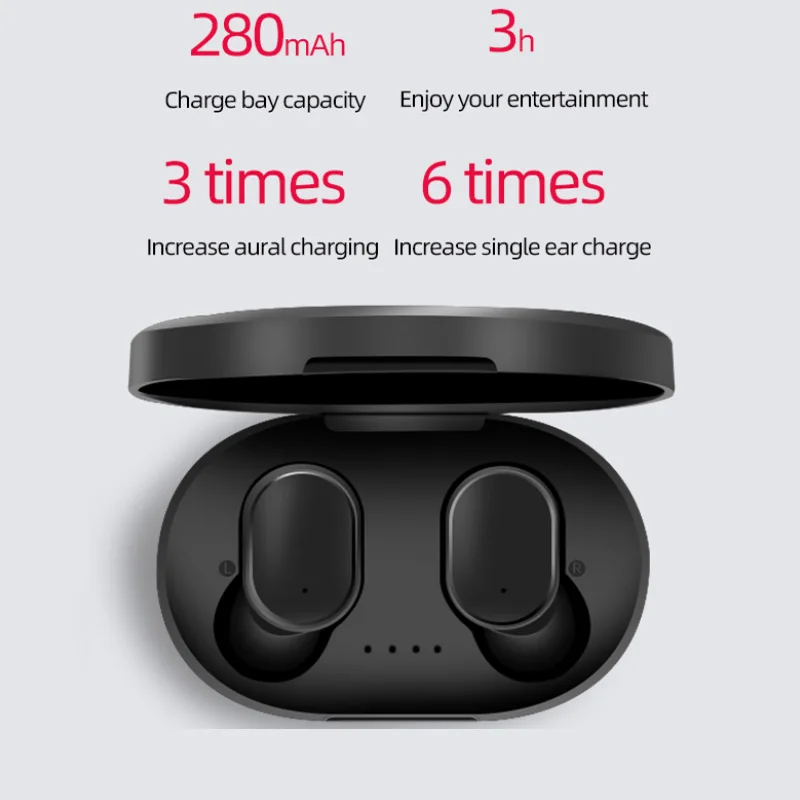 Описание:Управление одной кнопкой для легкого включения/выключения, воспроизведения/паузы/переключения музыкиЗвонки в режиме громкой связи для вождения, работы, встречи, бега.От одного до двух подключений, можно подключить к двум мобильным телефонам одновременно.Интеллектуальная Совместимость: поддерживает все Bluetooth мобильный телефон, планшеты, ноутбуки, музыку QQ, фильмы и т. д., универсальные все мобильный телефон.Характеристики:1. Версия Bluetooth: V5.02. Расстояние Bluetooth: 10 м3. Время зарядки: около 1-2 часов4. Время ожидания: около 80 часов5. Время прослушивания музыки: около 2,5 часов6. Время разговора: около 3 часов7. Аккумулятор наушников: полимерный литиевый аккумулятор 45 мАч8. Аккумулятор: полимерный литиевый аккумулятор 280 мАч9. Формат передачи звука: HFP/A2DP/HSP/AVRCPПосылка1 Bluetooth-наушники TWS (левое и правое уши)1 x зарядная коробка 280 мАч1 x USB-кабель для зарядки1 х Руководство пользователя4 наушника