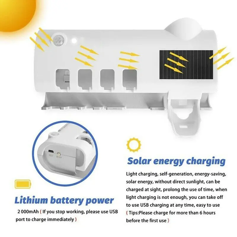 Умный держатель для зубных щеток с УФ светильник, настенный стерилизатор с автоматическим диспенсером зубной пасты для ванной комнаты