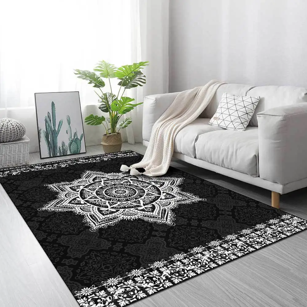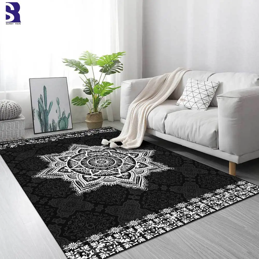 SunnyRain 1-piece печатные черные мандалы коврики для спальни ковры для гостиной коврики для кухни и комнаты для пола