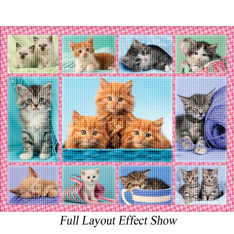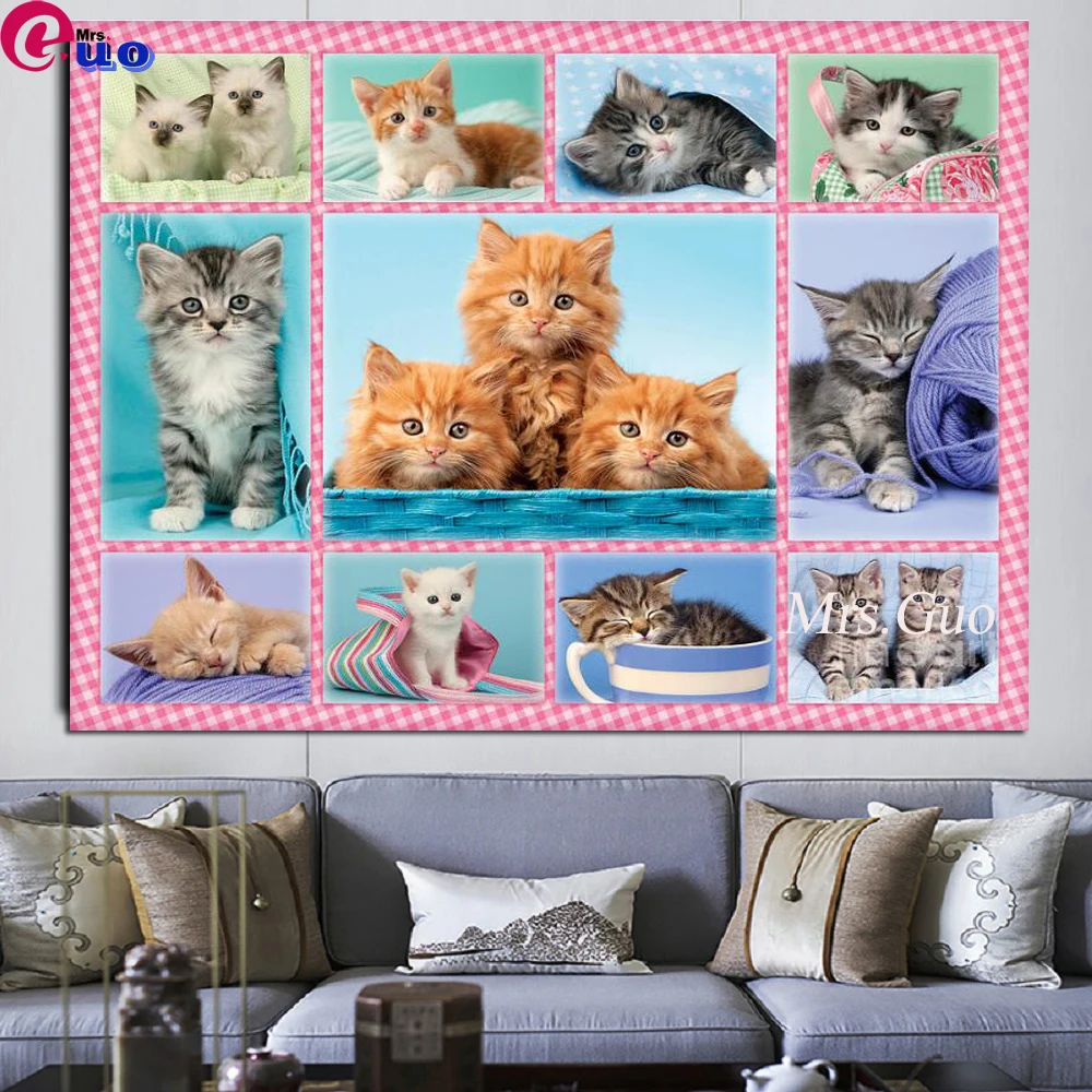 5D алмазная вышивка котят мульти-фото полный квадрат/круглая Алмазная Картина кошки картина Стразы Мозаика Декор на стену