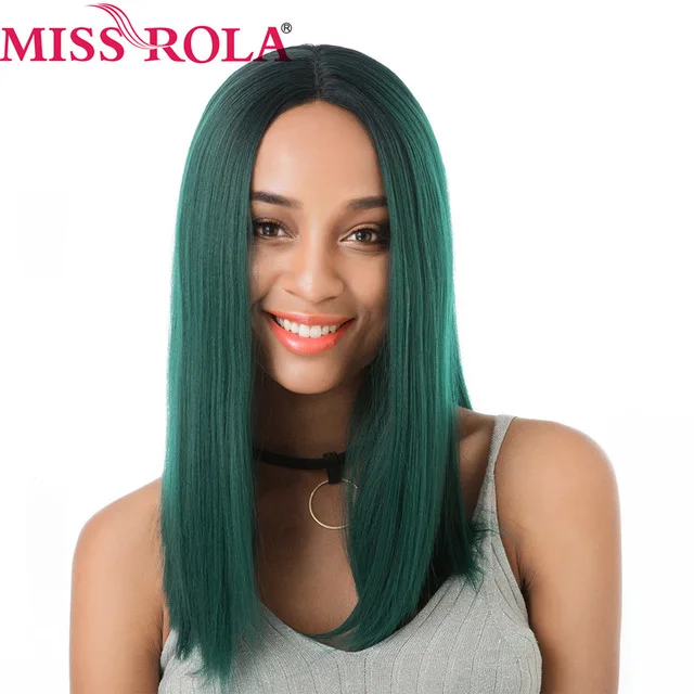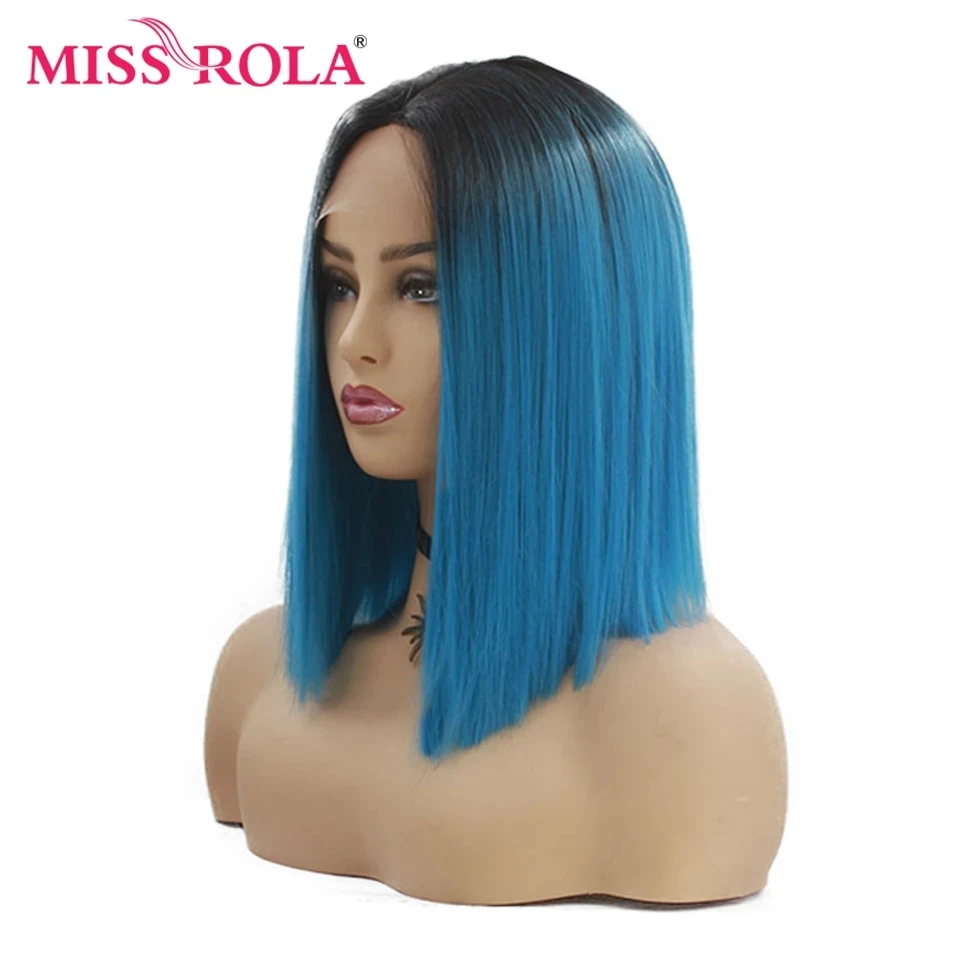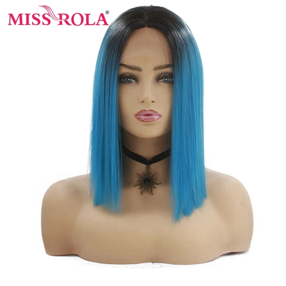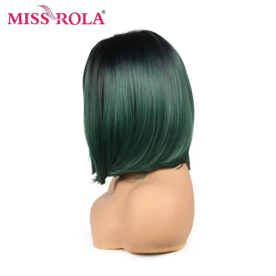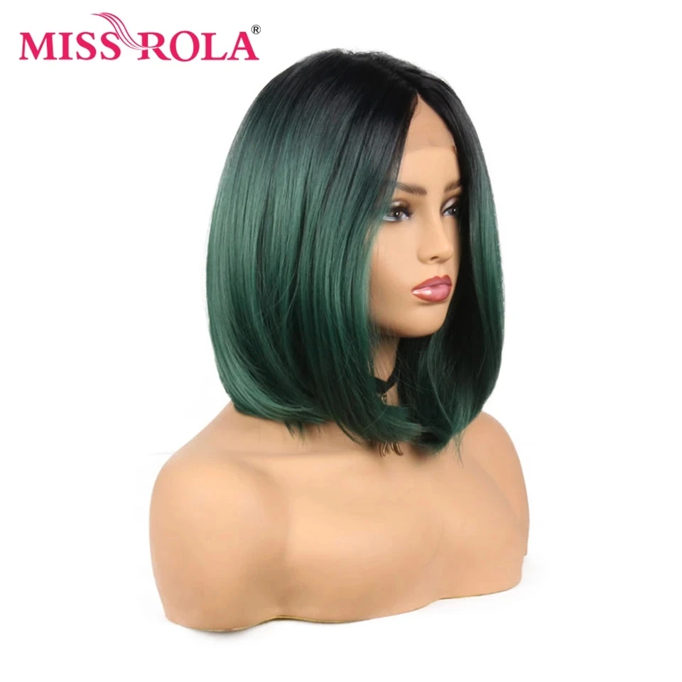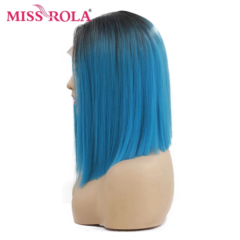Мисс Рола синтетические волосы на кружеве синтетические парики средней части боб парик для Для женщин эффектом деграде (переход от темного к цвет: черный, синий Цвет эффектом деграде (переход от темного к черный оливково-Для женщин парик