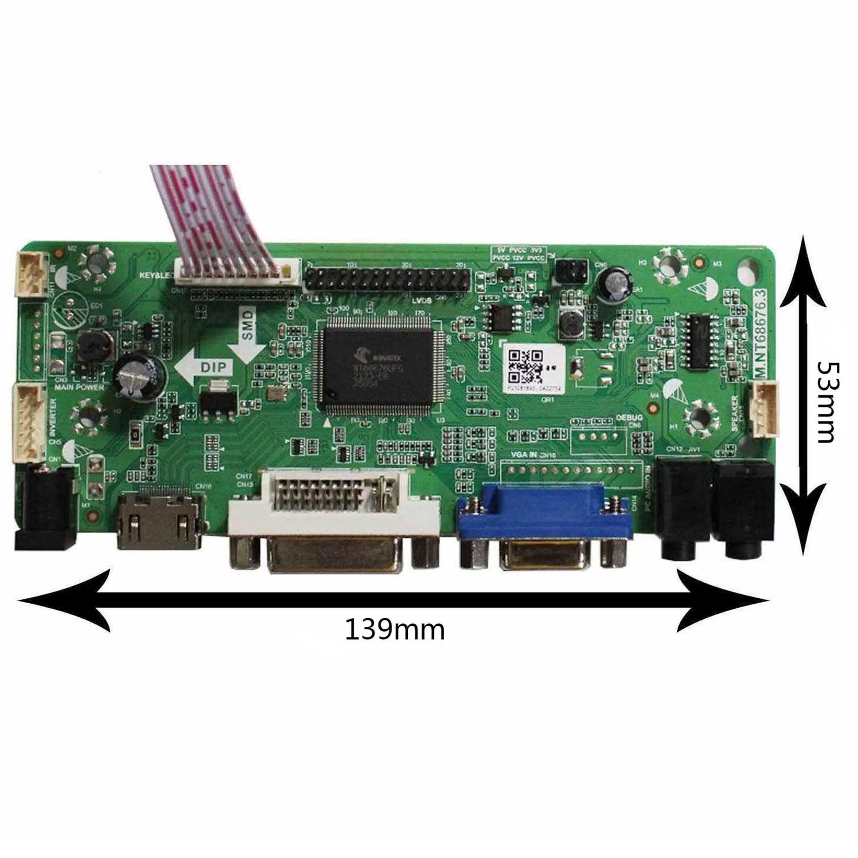 HD MI DVI VGA Аудио ЖК-плата для LVDS интерфейс ЖК-экранВходной адаптер питания: 12 В постоянного тока более 3 А.Поставляется в режиме ожидания, когда не входной сигналМодель в режиме ожидания <1 ВтВидео вход: HD MI DVI VGAАудио вход: HD MIАудиовыход: разъем динамикаOSD: яркость контрастность Авто язык и так далееЯзык: Английский Французский Немецкий Испанский итальянский и так далееРазмер платы: 125 мм x 58 мм x 17 мм