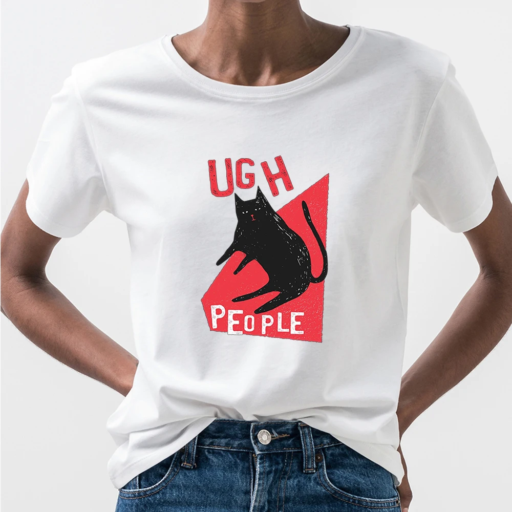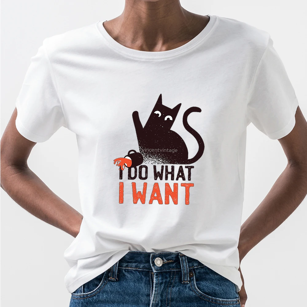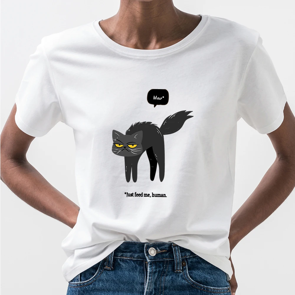 Женская футболка с рисунком кошки, черная или белая футболка оверса...