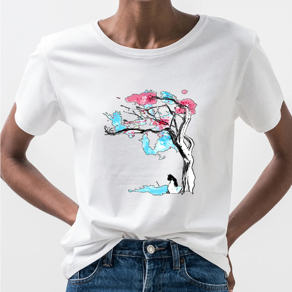 Модная женская художественная футболка с цветами вишни мака, летние...