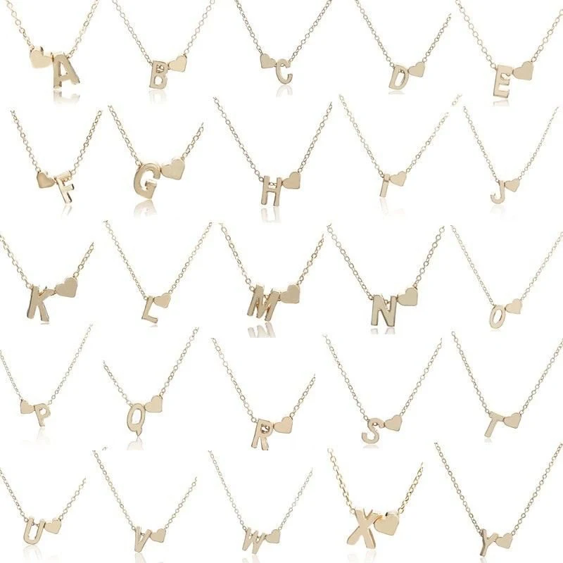 Лидер продаж, Модное изящное ожерелье с маленьким сердцем, 26 стилей, ожерелье-чокер с буквой и именем, ожерелье для женщин, кулон, ювелирные изделия, подарок