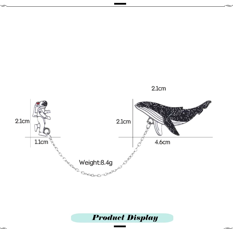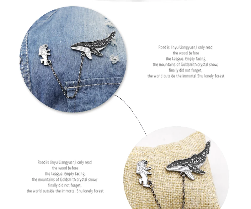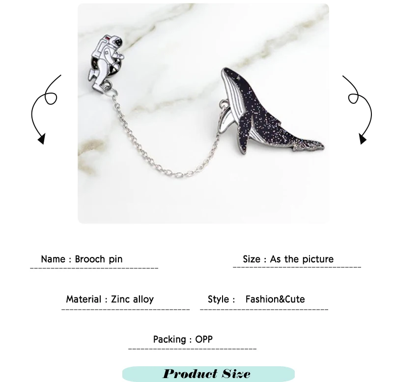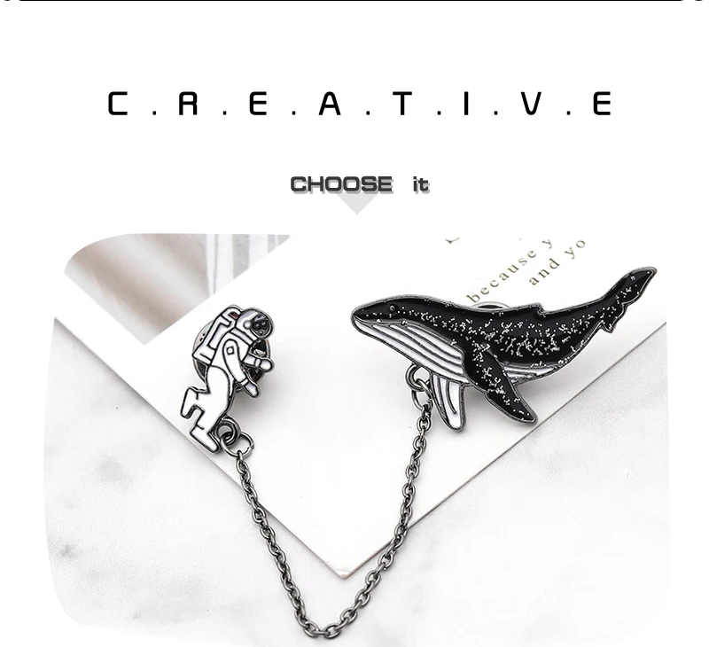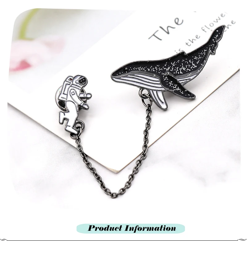 Эмалированный значок на лацкан с изображением китов, астронавтов, морских рыбок, брошь с цепочкой