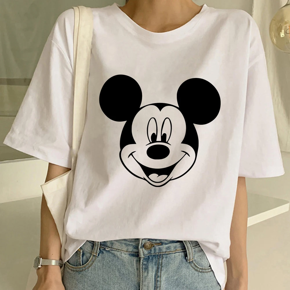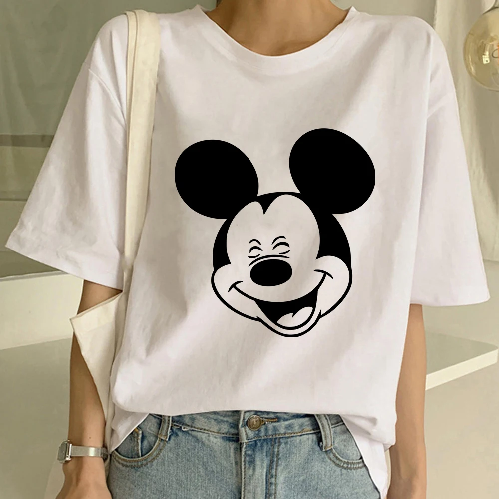 Футболка с головой Микки Мауса, женская летняя популярная футболка с круглым вырезом, футболки в эстетике унисекс, удобные женские топы