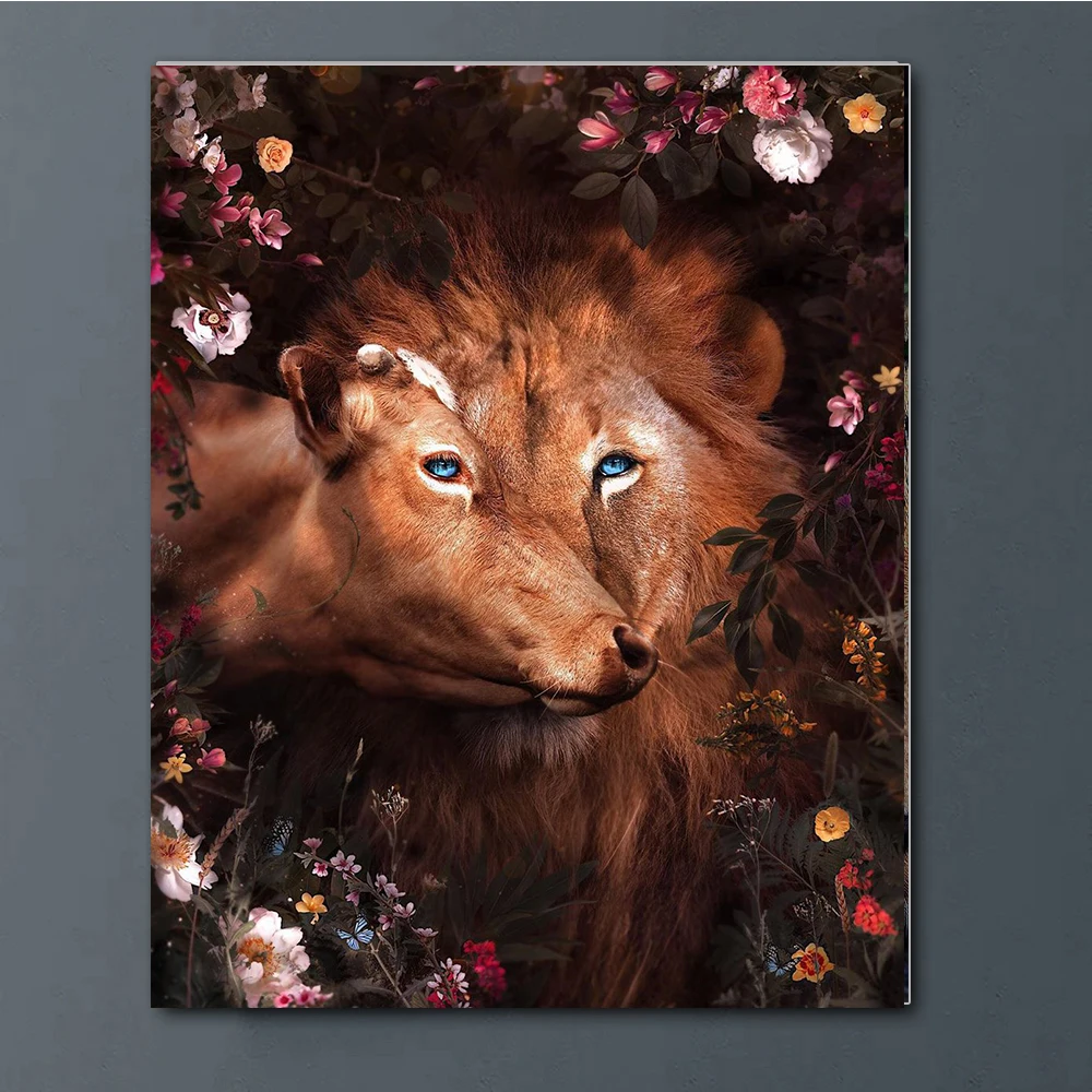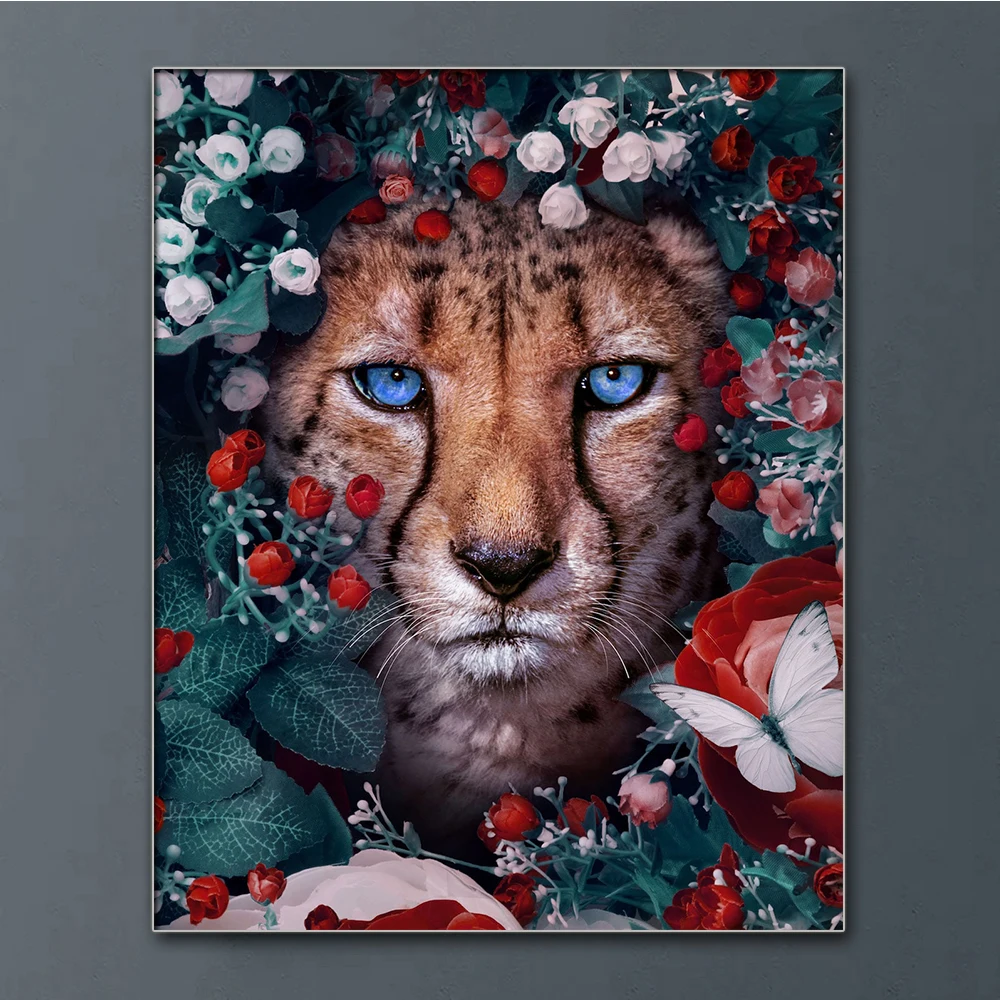 the me5D diamond painting ocelot monkey lion rabbit zebra fox flower