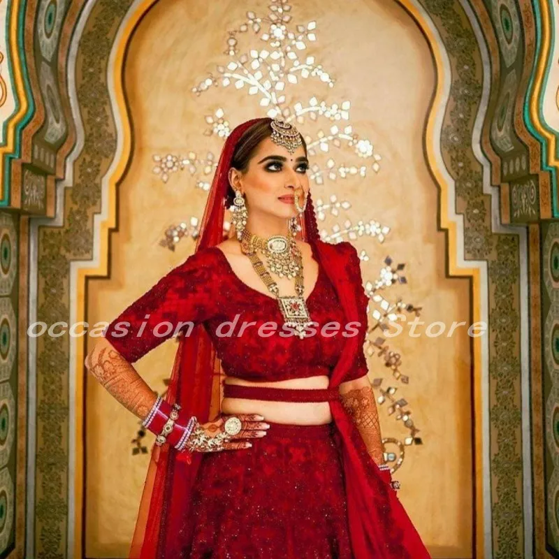 Роскошное красное свадебное платье, сверкающее свадебное платье при...