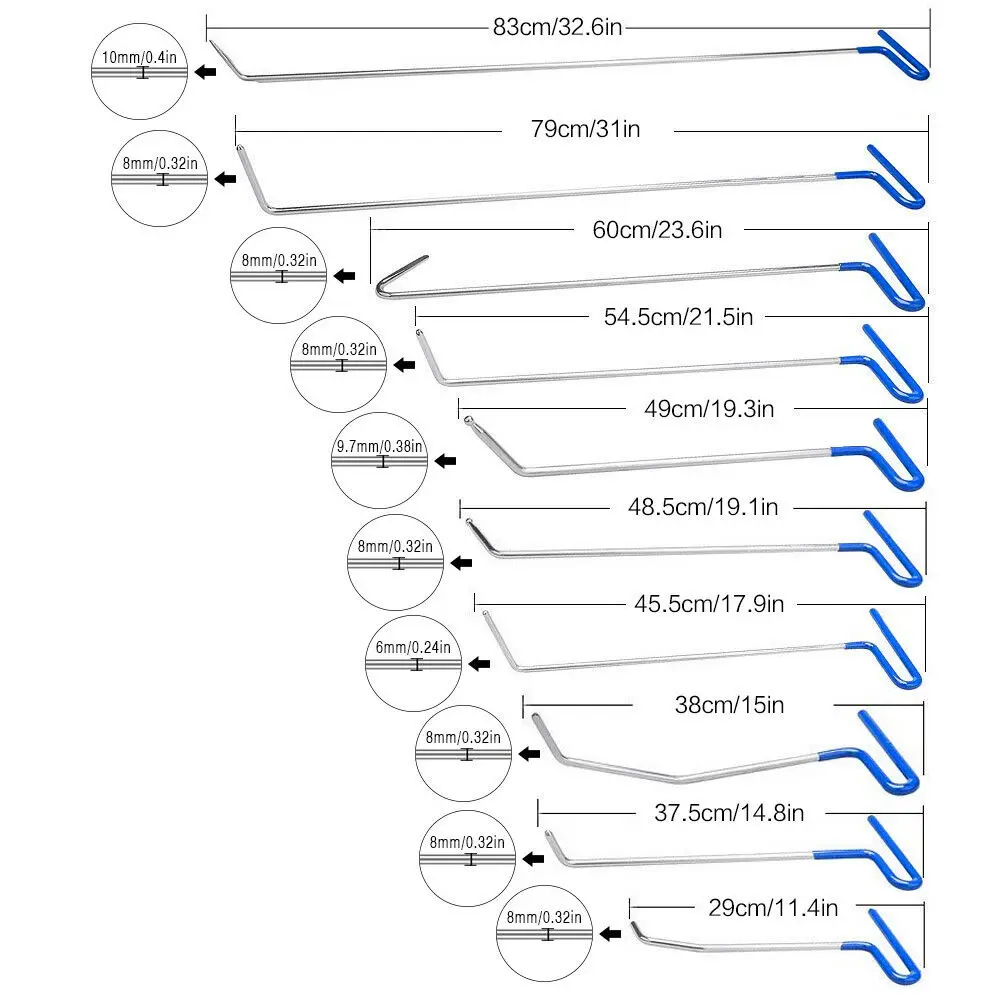 Автомобильные инструменты Дин вмятин ремонтные штоки Профессиональный безболезненный град удаление большой комплект (B)