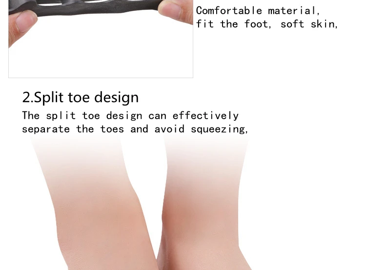 Особенности:Изготовлен из приятного для кожи материала, более удобен в носке.Успокаивает дискомфорт, вызванный деформацией носка.Улучшает устойчивость при ходьбе.Легко носить и легко использовать.Хорошие растяжимые свойства, подходят для разных людей.Эффективно отделяет пять пальцев ног и уменьшает трение.Эффективно корректирует деформацию носка.