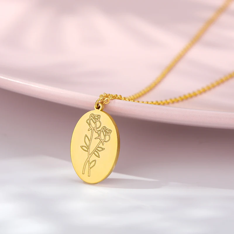 Ожерелье для женщин и девушек, цепочка на шею, овальный, золотой, серебряный цвет, чокер из нержавеющей стали, подвеска с цветком на день рождения 12 месяцев, ювелирные изделия