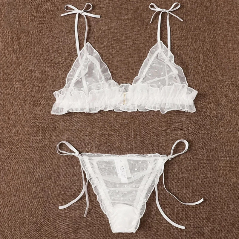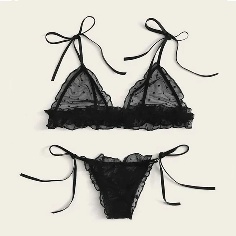 Новый комплект с бюстгальтером, сексуальное Бандажное бикини, нижнее белье, милый сетчатый прозрачный комплект нижнего белья в горошек, женское нижнее белье, трёхточечный костюм, сексуальное белье