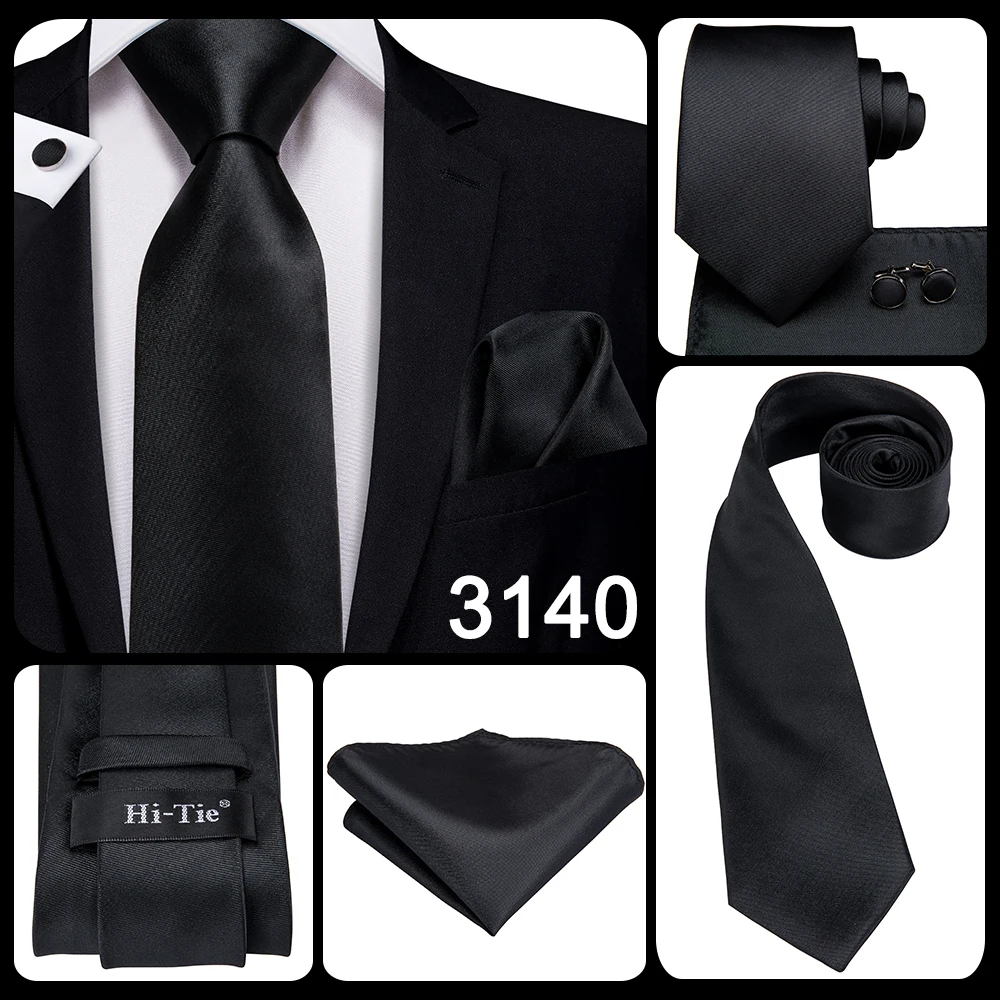 Hi-tie Черный Белый однотонный Шелковый Свадебный галстук для мужчи...