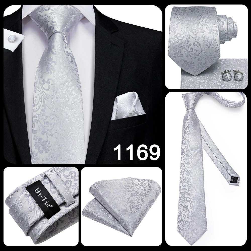 Hi-Tie Роскошный Серебряный новинка мужской галстук Gravata Шелковы...