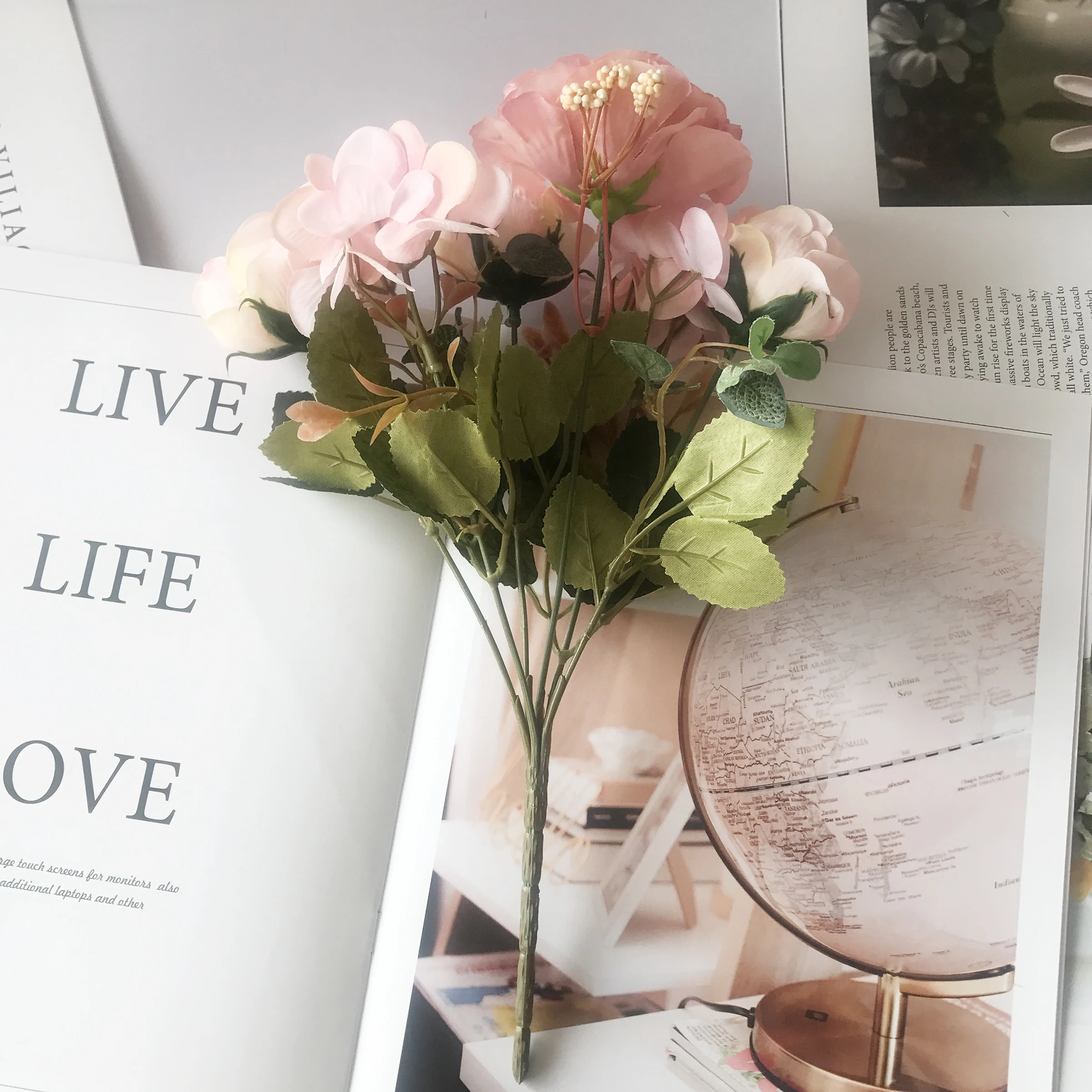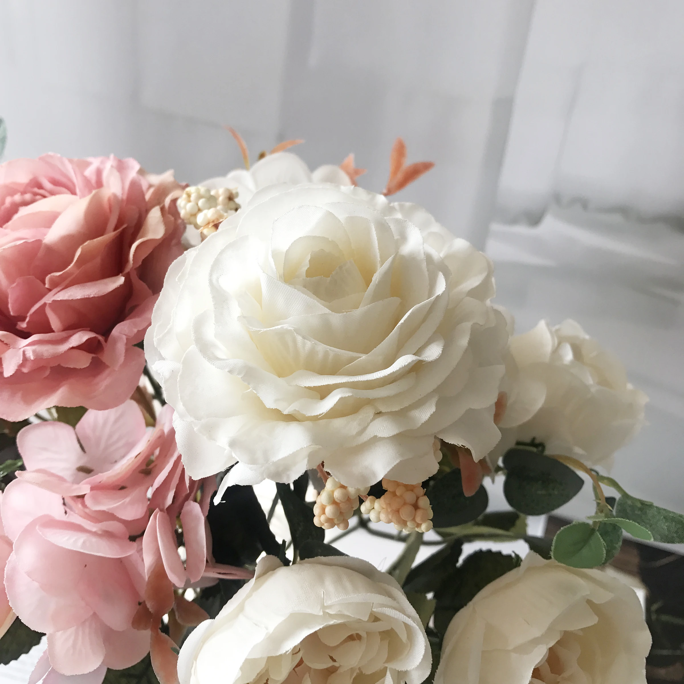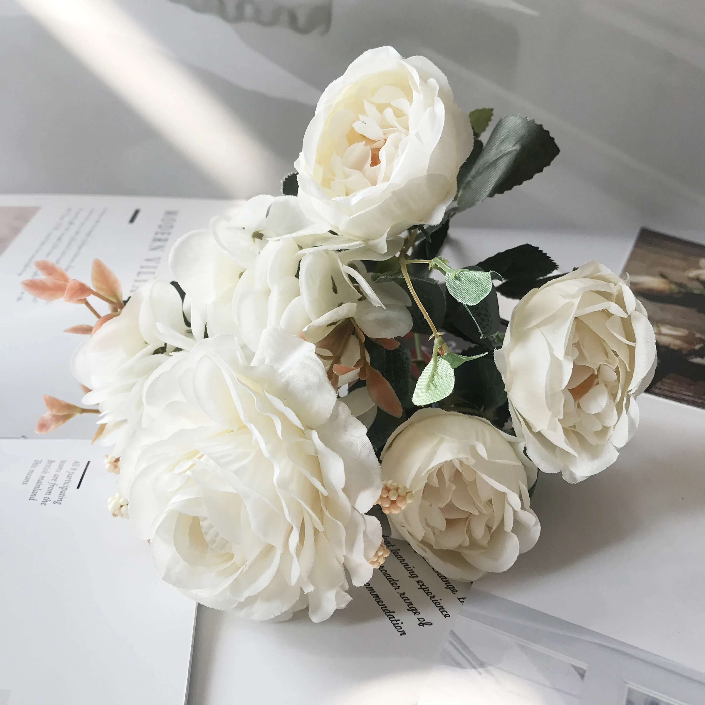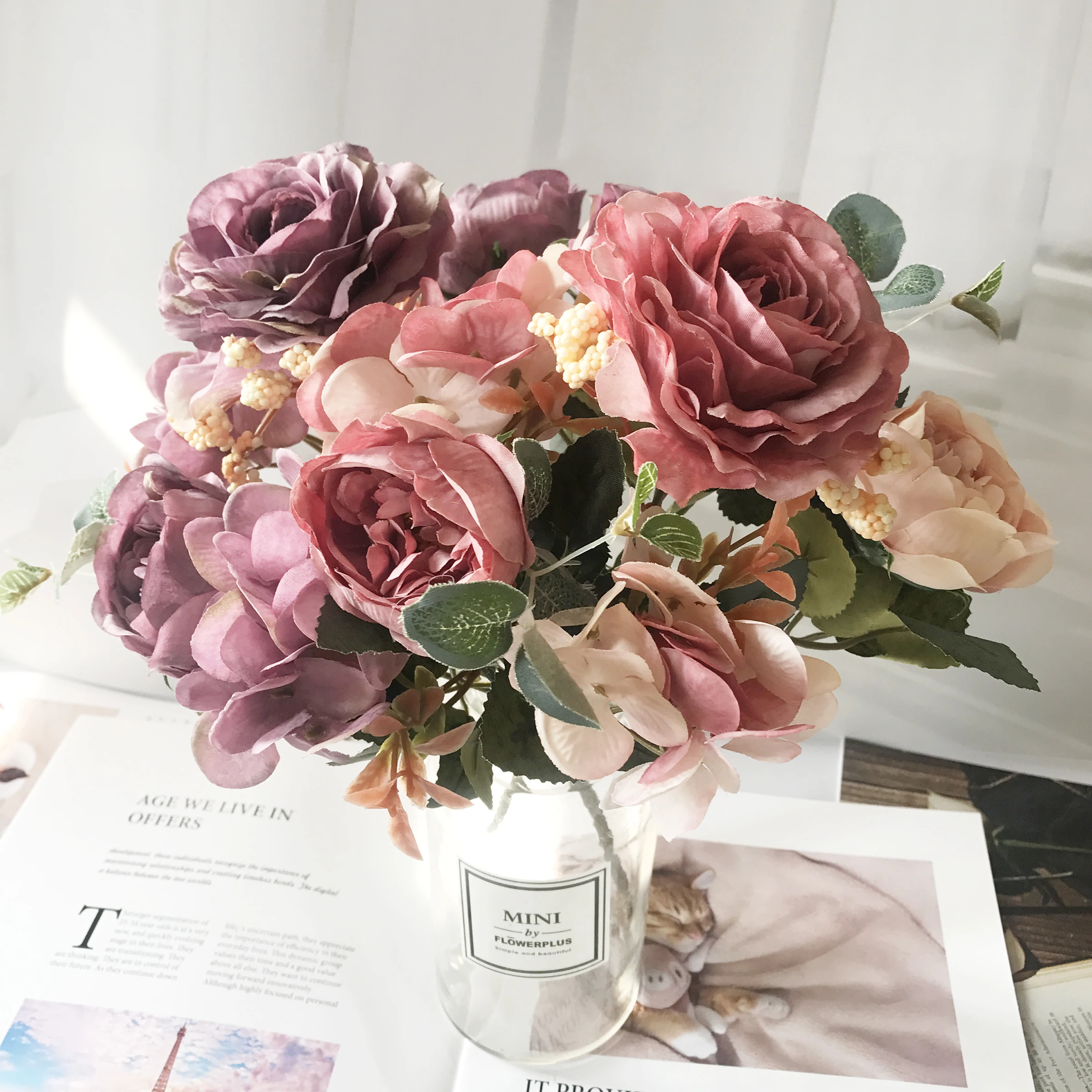 Искусственные цветы ретро букет роз из шелка Гортензия пион Винтаж ...