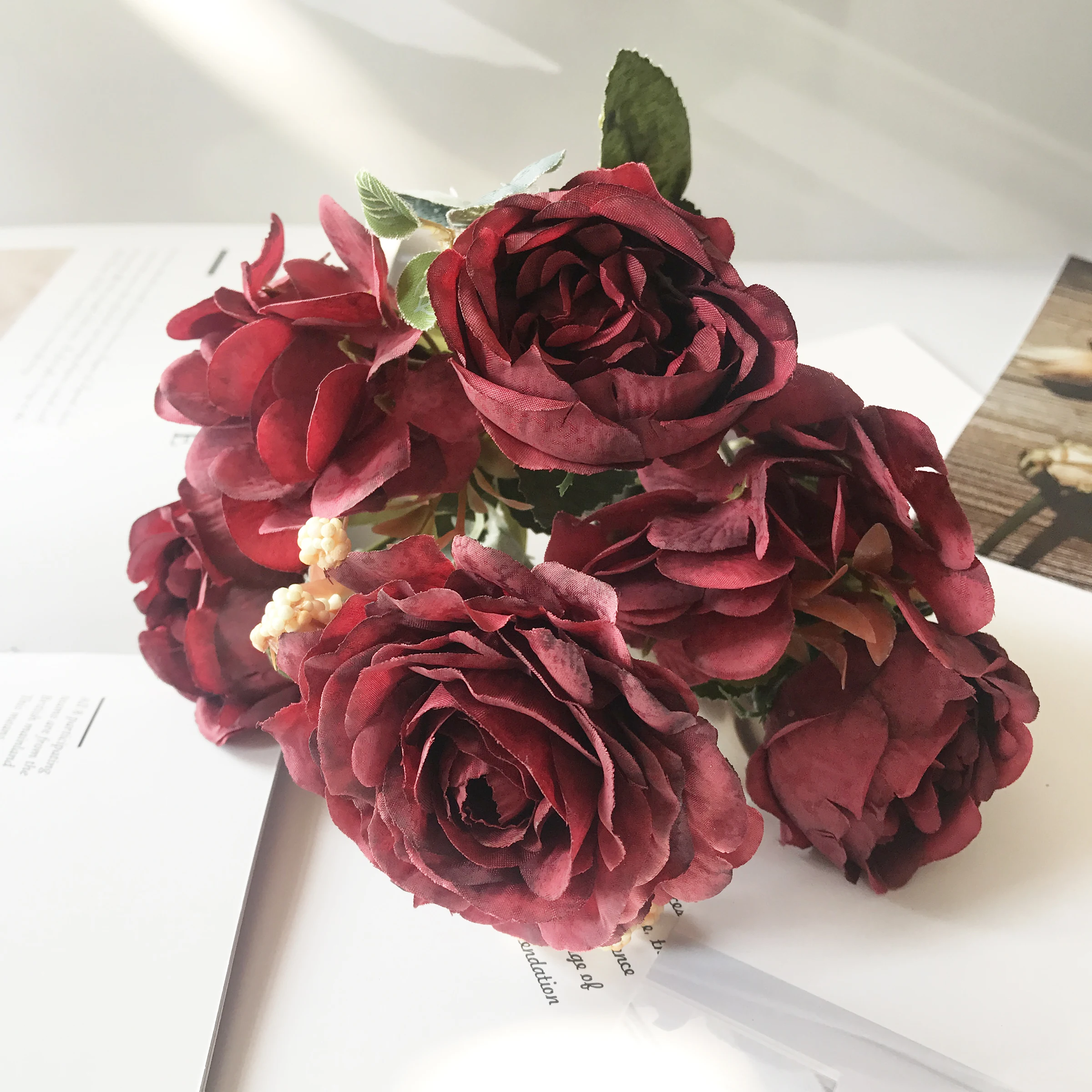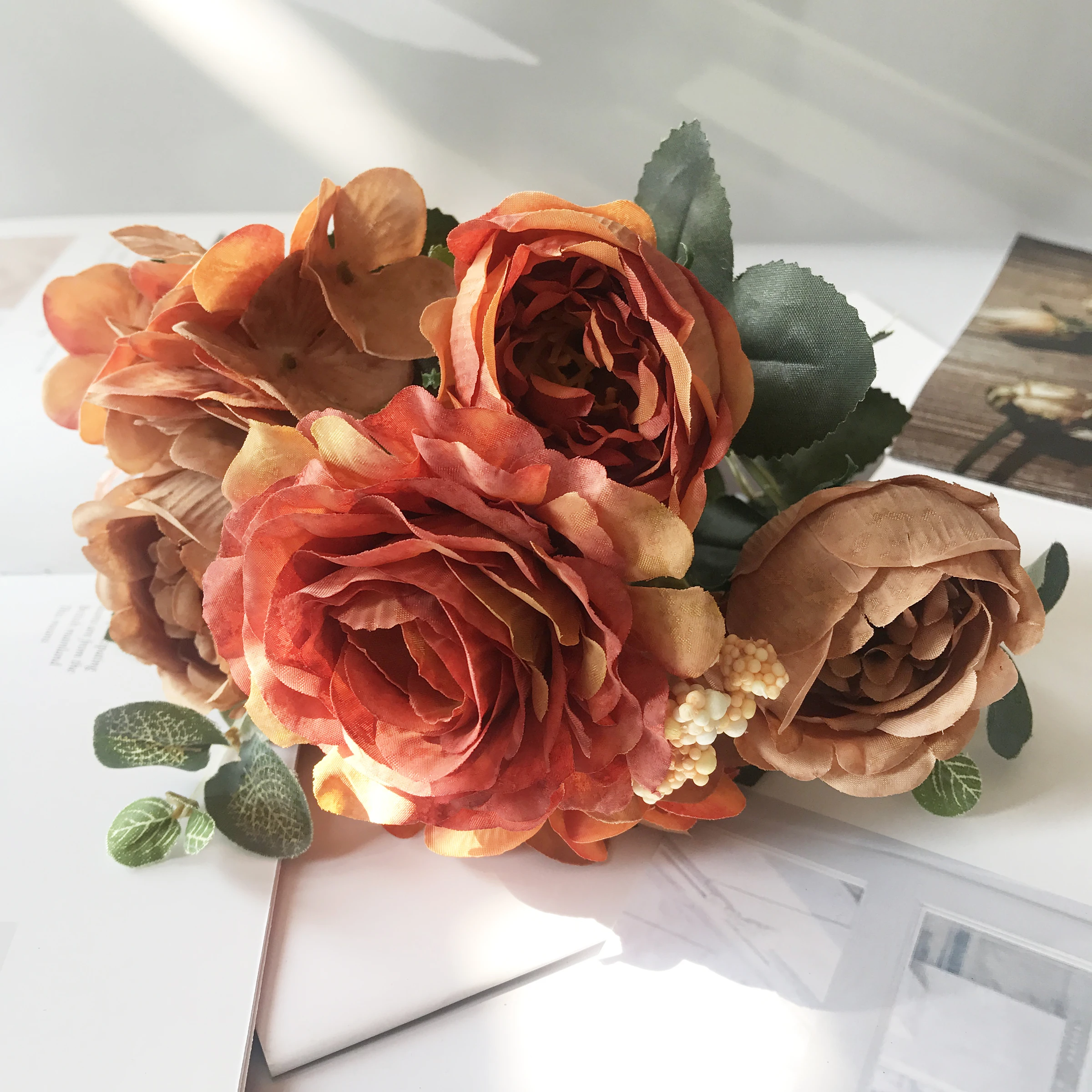 Искусственные цветы ретро букет роз из шелка Гортензия пион винтажная Невеста держащая поддельные цветы дома Свадебные украшения, аксессуары