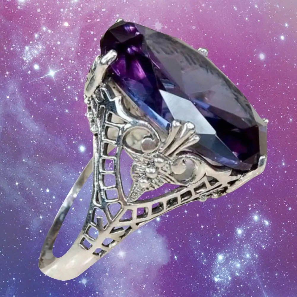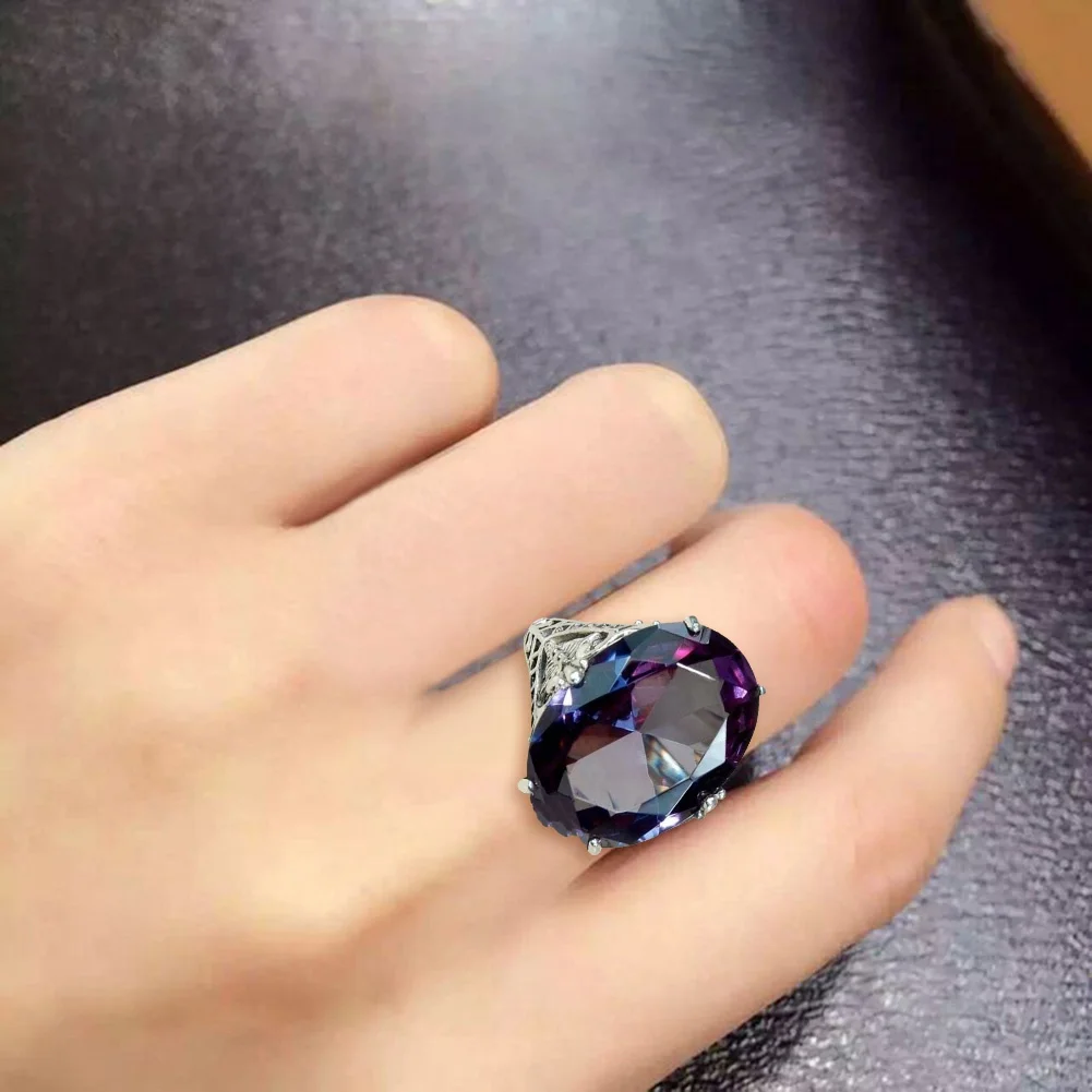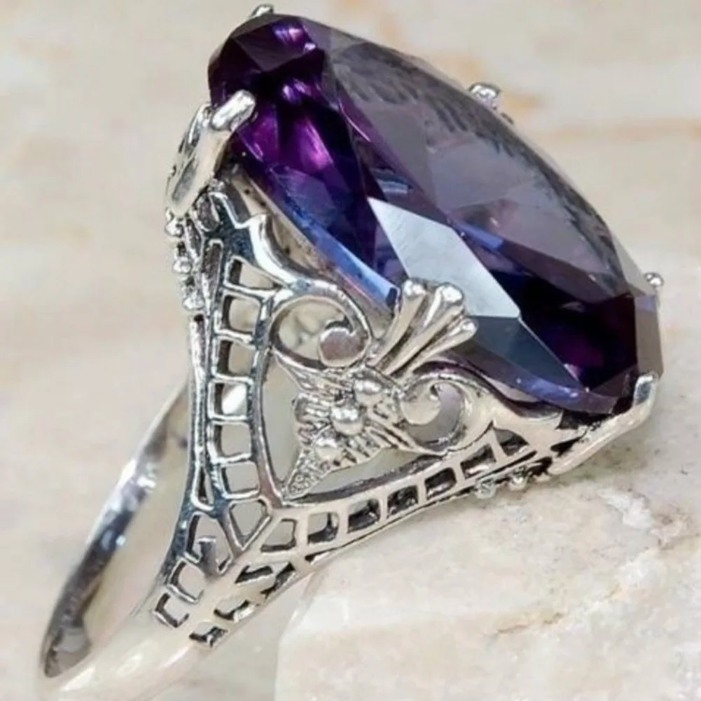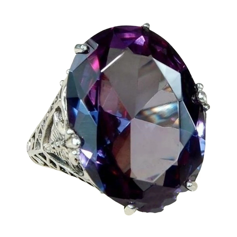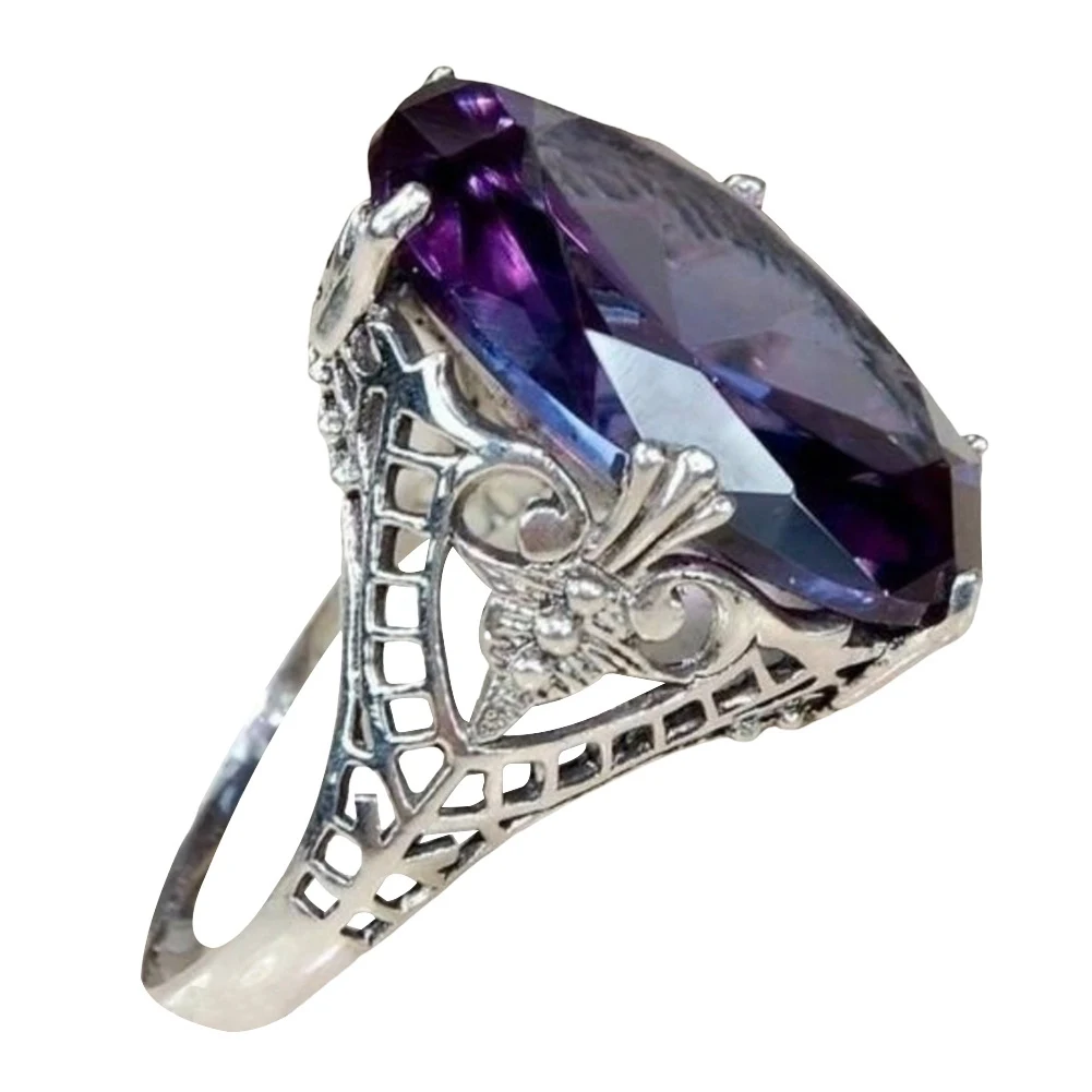 Большое овальное фиолетовое кольцо с кристаллом циркония для женщин винтажное модное розовое золото заполненное черным камнем обручальное кольцо подарок для матери