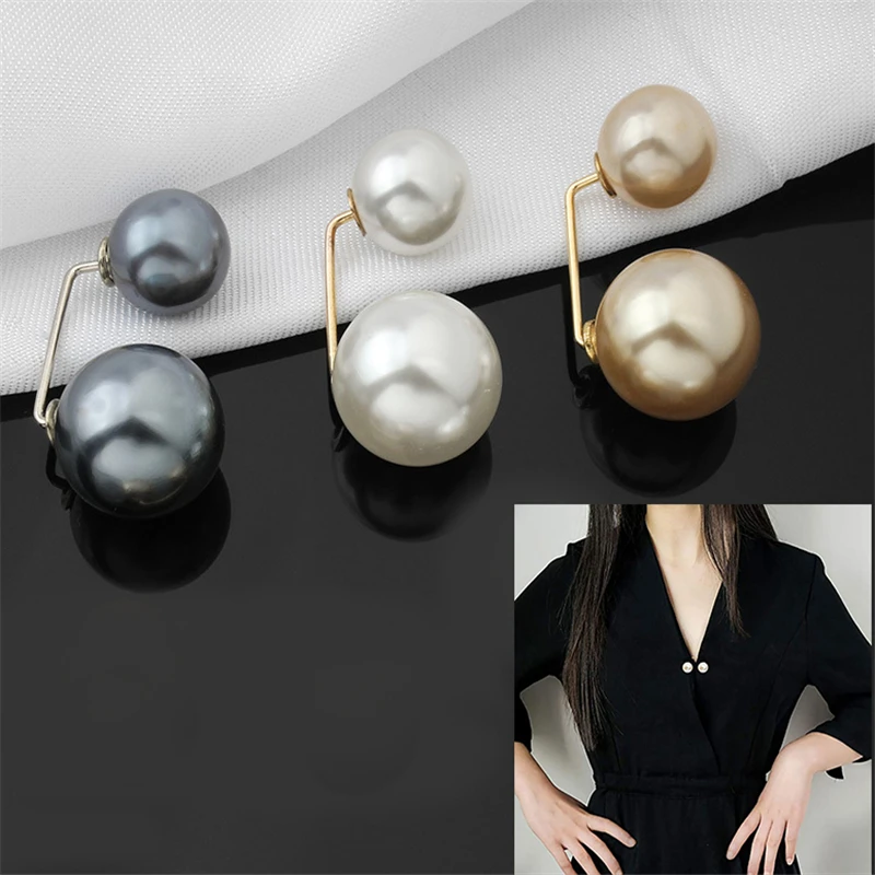 2 шт., простая двойная жемчужная брошь для свитера, воротника, игла, безопасная брошь на булавке, модные аксессуары для одежды, броши для женщин, подарки