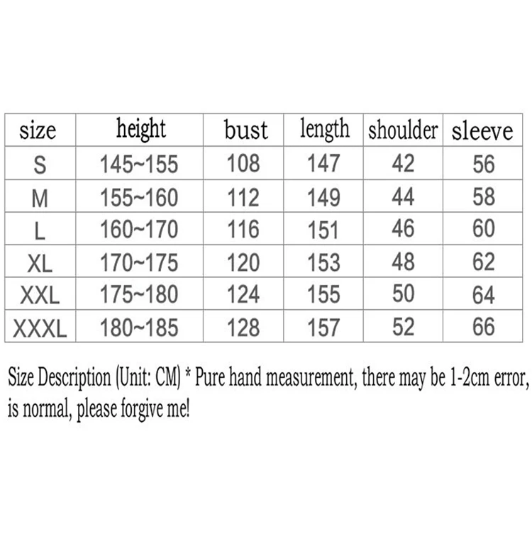 1. В связи с использованием разных методов измерения, возможно отклонение на 1-3 см в отношении товаров, пожалуйста, убедитесь, что это нормально для вас перед заказом.