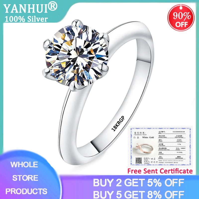 Бренд: YANHUI Fine или Fashion: Fine Материал кольца: серебро 925 пробы, позолота Камень кольца: 8 мм 2 карат циркония алмаз Кольцо штамп/логотип: 18KRGP Вес: 2,8 г Сертифицированные ювелирные изделия с сертификатом Если вы получите поддельное кольцо, мы вернем вам стоимость в 10 раз.