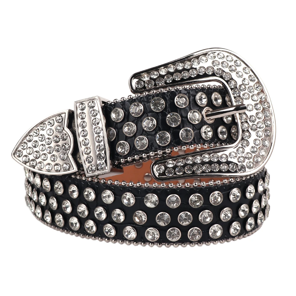 Новый Популярный западный Bling пояс со стразами Съемная застежка пояс с шипами для женщин и мужчин модный ковбойский пояс из коровьей кожи для женщин