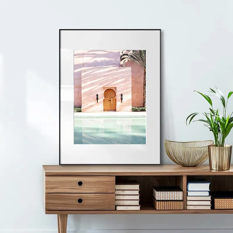 Постер с розовым окошком и дверью, пейзаж, Современная Картина на х...