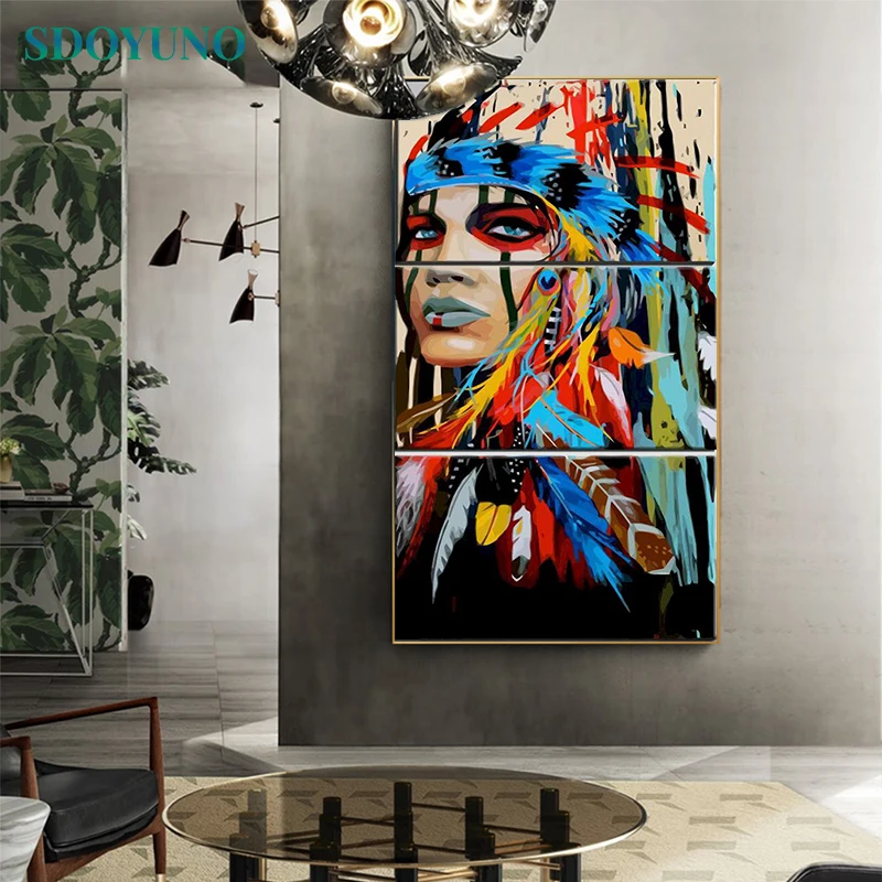 SDOYUNO 3 шт. 40x5 0 см краска по номерам для взрослых индийских DIY Краска по номерам на холсте искусственная краска