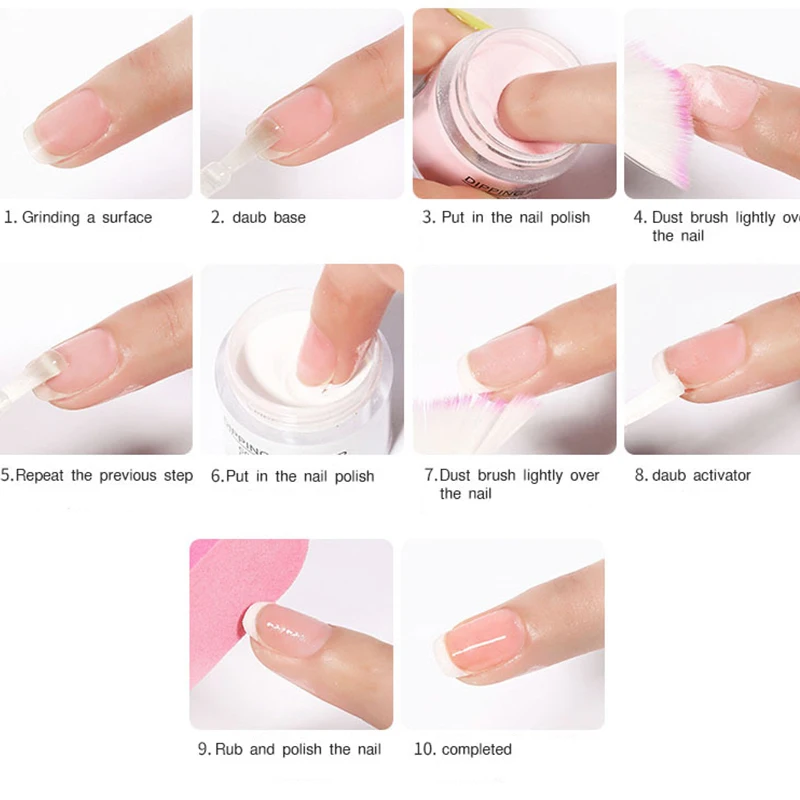 Параметры Емкость: около 10 млКоличество: 1 коробкаЦвет:Белый, прозрачный, розовый Содержимое посылка 1 коробка Блестящий Порошок Особенности 100% новый товар высокого качества.Украшение для ногтей.Легко наносится на натуральные или искусственные ногти.Позвольте вам профессиональный или домашний дизайн ногтей.Профессиональный подарок для ногтей для себя или вашей девушки. Как использовать 1. Нанесите тонкое пальто на основание.2.Dip-наконечник всего ногтя в блюдо, отчистите излишки порошка.3. Нанесите dip активатор, дождитесь высыхания на воздухе.4. Используйте восстановитель кисти для очистки щетки активатора.5. Нанесите верхнее пальто, дождитесь высыхания на воздухе.6. Отделка.